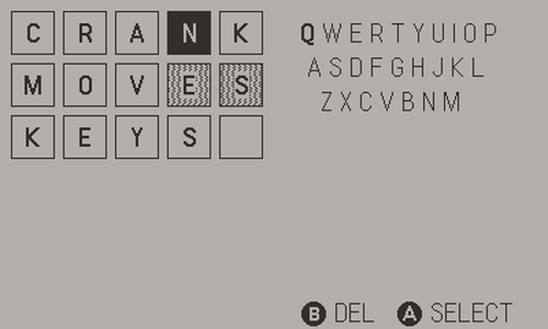 Crank scrolling through the keyboard is really nice, though I think arranging the letters in alphabetical rather than QWERTY order would make more sense.